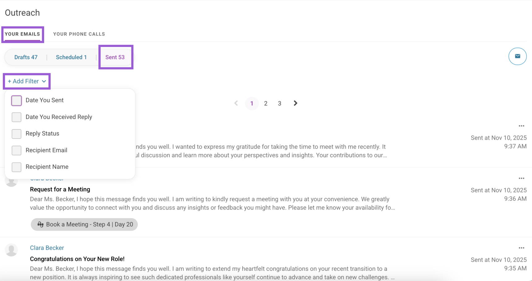 Reviewing your email outreach just got easier with new filters now available across the Outreach > Your Emails pages! Here are the filters you will find on each page: