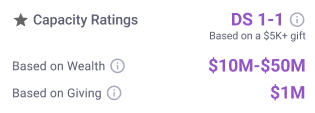 If you are a DonorSearch customer, this rating is equivalent to “Target Ask Based on Wealth” that you are familiar with seeing in DonorSearch