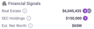 DS 1-2 – Major wealth indicators (e.g., $2M+ real estate, executive at $5M+ firm, foundation trustee, SEC insider, $10K+ political giving)